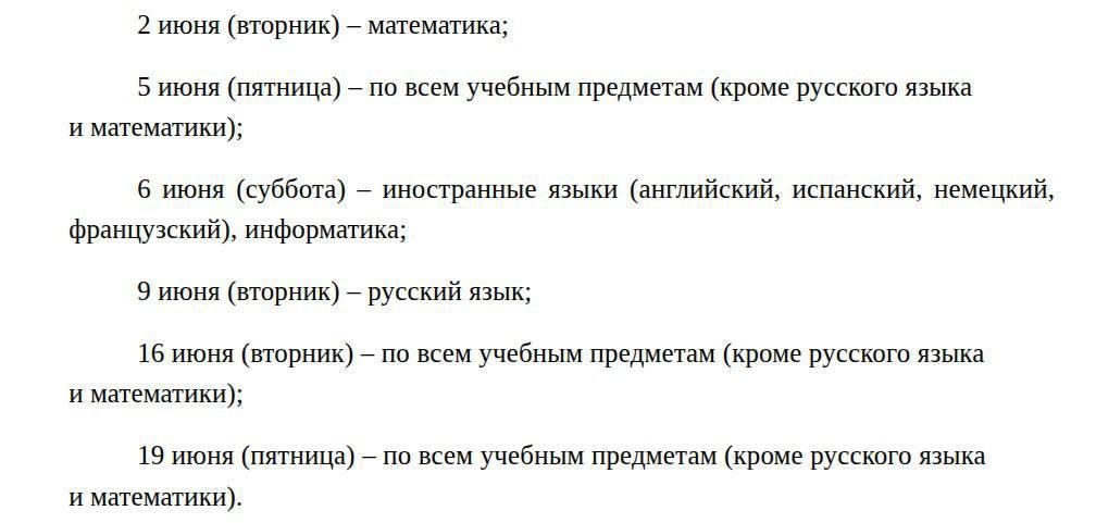 С 22 по 25 июня предусмотрены резервные дни для сдачи всех предметов.